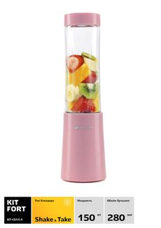 - Хороший блендер для смузи Kitfort Shake & Take 1311-1 розовый в каталоге Аренда бытовой техники в России;