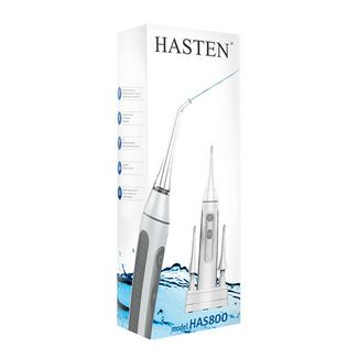 Ирригатор полости рта Hasten HAS800 оснащен встроенным мощным и экономичным Li-ion аккумулятором и предназначен для ухода за зубами и деснами дома и в поездках. Питание осуществляется от современного литий-ионного (Li-ion) аккумулятора, заряда которого хватает на длительное время. Ирригатор Hasten HAS800 можно подзаряжать по мере необходимости, не дожидаясь полной разрядки, при этом емкость он терять не будет. Уникальный ирригатор HAS 800 (без ограничения емкости для воды)значительно повышает уровень гигиенической защиты полости рта и обеспечит ежедневный эффективный уход за Вашими зубами и деснами. Высокое давление и пульсирующая технология подачи воды ирригатора Hasten HAS800 помогут вам очищать межзубные промежутки, пришеечную область зубов и зубо-десневые карманы, что недоступно для обычной зубной щетки. Людям, которые только начинают использовать ирригатор Hasten HAS800, рекомендуется сначала пользоваться режимом L (легкий). В первое время, если десны слабые, они могут немного кровоточить из-за воздействия на них массажной струи. Десны быстро укрепляются (в течение нескольких дней), так как во время гидромассажа к ним приливает кровь. После этого можно переходить к другим режимам чистки. Ирригатор имеет три режима работы по мощности и два режима по времени. Помимо чистки полости рта от загрязнений, прибор Hasten HAS800 также рекомендуется для профилактики кариеса, гингивита и пародонтита. Всего за две недели (при ежедневном использовании) ваши десны станут более здоровыми. Hasten HAS800 cпособствует устранению запаха изо рта и уменьшению кровоточивости и воспаления десен. При наличии в полости рта мостов, имплантов, коронок и брекетов Hasten HAS800 является просто незаменимым средством ежедневной гигиены! Несмотря на свои небольшие размеры, мощность портативного ирригатора сопоставима с лучшими стационарными моделями. Прибор прост в управлении и удобен в использовании дома и в дороге. Он компактен и занимает мало места в ванной комнате и дорожной сумке. Всего 1