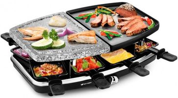 Гриль-раклетница KITFORT КТ-1649 многофункциональная варочная поверхность для приготовления раклетов, стейков, сосисок и разнообразных закусок. На гриле можно плавить сыр, готовить всякие начинки по своему вкусу, обжаривать кусочки картофеля или перца, а на панели с антипригарным покрытием можно готовить блинчики. Преимущества Мясо, приготовленное на гриль-раклетнице по вкусу ничем не уступает блюдам с мангала. Можно готовить сразу для большой компании с разными вкусовыми предпочтениями. Овощные блюда сохраняют больше минеральных веществ и витаминов. Пища жарится в собственном соку и получается очень сочной. Особенности модели Устройство оснащено ТЭНом, под которым имеются специальные углубления для порционных сковородок. ТЭН нагревает камень и панель для гриля и одновременно расплавляет сыр в сковородках. Сверху ТЭН закрывает каменная плита и панель с антипригарным покрытием. Температура плавно регулируется при помощи поворотного переключателя. В комплекте есть 8 лопаточек, в которых можно готовить соусы. Индикатор нагрева оповестит о стабильности работы прибора. Элегантный дизайн дополнит интерьер кухни. Если хотите использовать функционал этого гриля в полной мере, то в инструкции есть рецепты для приготовления множества интересных блюд. Готовьте быстро и здорово для всей компании вместе с KITFORT. None Возможен самовывоз. Есть доставка.