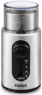 Ароматный и бодрящий кофе это прекрасное начало рабочего дня. Для приготовления кофе, необходимо его перемолоть, а поможет в этом кофемолка KITFORT КТ-748. Двухлезвийный нож прибора обладает прочностью и надежностью, он подходит не только для помола кофе, но и для измельчения специй или орехов. Это достаточно компактная модель, которая с легкостью поместится даже в маленькой кухне. Стильный внешний вид устройства порадует каждого. Модель обладает мощностью 200 Вт с возможностью регулировки степени помола. Особенности и преимущества Емкость резервуара обладает объемом 250 мл. Съемная чаша изготовлена из нержавеющей стали. Прозрачная крышка позволит следить за степенью помола. Предусмотрена удобная кнопка включения на корпусе. Специальный защитный механизм препятствует запуску устройства, если крышка установлена неправильно. Прорезиненные ножки препятствуют скольжению прибора. Кофемолка удобна в использовании, она подойдет как для домашнего использования, так и в офис. Рекомендации по использованию Во избежании поломок и повреждений использовать кофемолку рекомендуется строго по назначению. Перед чисткой устройство необходимо отключить от сети питания. При использовании следите за нагревом мотора и не допускайте перегревания. Не перегружайте отсек для зерен, чтобы не перегружать мотор. None Возможен самовывоз. Есть доставка.
