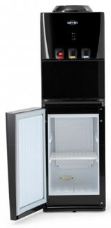 с компрессорным охлаждением и с высокой производительностью нагрева воды - до 6 литров в час (мощность водонагревателя 650 Вт)Шкафчик - холодильник 20 л.Высота стандартная - 980 мм.Для дома/Для офисаТри крана, управление кнопками - горячая, холодная и вода комнатной температурыЦвет корпуса черныйБутыл0приёмник, верхняя и передняя панели изготовлены из высококачественного, устойчивого к ультрафиолету ABS пластикаБоковые панели стальныеБаки горячей и холодной воды из нержавеющей сталиТри LED индикатора (включение питания, индикатор нагрева, индикатор охлаждения - power, hot, frost) None