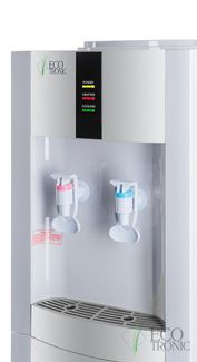 Напольная модель белого цвета с серебристой вставкой У данной модели стандартный одинарный блок электронного охлаждения Удобные краны подачи воды "Нажим кружкой" Надежная и недорогая модель