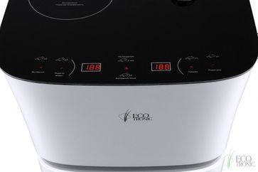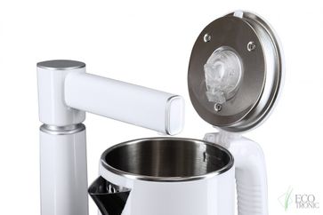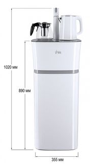 На чайном столике расположен кран подачи воды и два чайника, для кипячения и заварочный. Заварочному чайнику можно включить режим постоянного подогрева (~ до 60°С). Чайник кипячения изотермический – меньше греется, лучше сохраняет температуру. Подача воды в него возможна без открытия крышки. Нагрев воды в чайнике включается вручную, либо автоматически в случае использования функции регулировки температуры воды. Автоотключение нагрева при температуре 100°С. Панель управления сенсорная, на русском языке, с информационным дисплеем. Корпус и передняя панель белого цвета. Поверхность чайного столика черная, чайник для кипячения и кран подачи воды белого цвета с серебристой отделкой. None