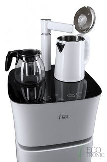 Кулер с чайным столиком Тиабар Ecotronic TB11-LE white Тиабар Ecotronic TB11-LE white – это напольный кулер с чайным столиком. Нижняя загрузка бутыли, электронное охлаждение. Нагрев воды в чайнике до 100°С. Два чайника – для кипячения (изотермический) и заварочный. Стильный и многофункциональный тиабар: