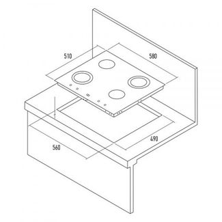 Размеры и подключение: Мощность подключения: 6,3 кВт Размеры варочной поверхности (ВхШхГ), мм: 50х580х510