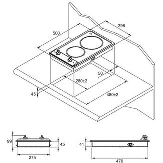 • Ширина 30 см • 2 электрические конфорки: – передняя 145 мм / 1,5 кВт – задняя 180 мм / 2,0 кВт • Конфорки быстрого нагрева • Индикаторы включения • Механическое управление • 6 уровней мощности • Фронтальное расположение панели управления Размеры и подключение: • Мощность подключения: 3,5 кВт • Размеры варочной поверхности (ВхШхГ), мм: 45x300x500