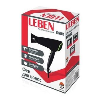 - LEBEN Фен для волос проф. 2000Вт, 2 скорости, 3 темп. реж. с диффузором 243х98х308 мм Черный по выгодной цене 2 193 р. руб.;