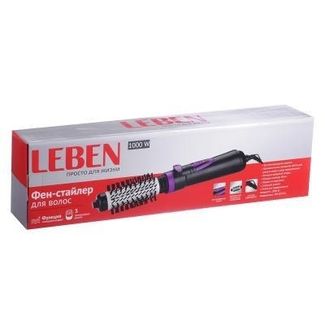 - LEBEN Фен-щетка для волос, 1000Вт, 3 темп. реж., 2 скорости, автомат. вращение НТ-1002 12х7,5х43 см чёрный, фиолетовый по выгодной цене 3 040 р. руб.;