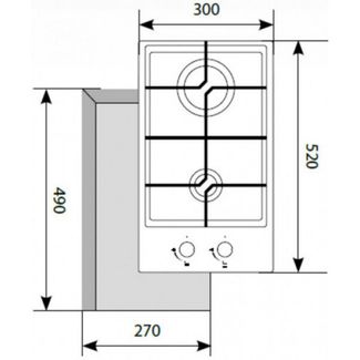 Газовая варочная поверхность Ширина: 30 см Цвет: черный Количество конфорок: 2 Конфорка быстрого нагрева: 1 х 3000 Вт Дополнительная конфорка: 1 х 1000 Вт Автоматический электроподжиг Газ-контроль Чугунные решетки Фронтальное расположение панели управления Поверхность из закаленного стекла