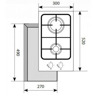 Размеры: Размеры варочной поверхности (ВхШхГ), мм: 95х300х510