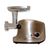 Электрическая мясорубка SINBO SHB 3165 полностью сделана из металла, в том числе, все детали и комплектующие. Пластиковым в данном наборе остался только толкатель, и то такое решение было принято для удобства работы с прибором. Корпус имеет серебристый цвет и выполнен в минималистическом стиле: трапециевидная форма, сглаженные края, все строго и практично. На боковой грани находится переключатель скорости оборотов, находясь в положении «off» мясорубка будет выключена, поворачивая ручку тумблера по часовой стрелке вы перейдете в режим скорости «I» или «II», стоит учитывать, что вторая скорость запускает мотор на полную мощность в 3000 Вт. Для продолжительного срока эксплуатации двигателя предусмотрены функции «защиты от перегрузки» и «защиты от перегрева». Производительность данной модели составляет 4,5 кг в минуту. Рядом с переключателем скоростей находятся кнопка режима реверса, что запускает работу шнека в обратном положении. Выше кнопки регулировки скоростей расположен поворотный фиксатор блока мясорубки. На дне установлены прорезиненные ножки, которые не только предотвращают скольжение во время работы, но и глушат вибрацию. Шнур электропитания закреплен в задней части, он имеет достаточную длину для использования прибора в домашних условиях. Технические характеристики: