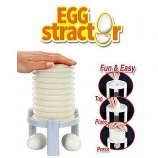 Скорлупа отделяется от яйца всего за пару секунд! Очиститель вареных яиц в одно нажатие Eggstractor Это только кажется, что чистка яйца – простая процедура. На самом же деле справиться с задачей не так просто. То яйца еще не успели остыть и не хочется мучиться с кипятком, то плохо чистятся и скорлупа остается. Eggstractor – это революционная мини машина, которая освободит вас от таких хлопот. Устройство обладает миниатюрными размерами и выглядит очень стильно, потому прекрасно впишется в интерьер любой кухни! Как работает очиститель вареных яиц в одно нажатие? С задачей справится даже маленький ребенок, который очень любит помогать маме на кухне! Необходимо разбить тупую часть яица и вставить его в выемку Eggstractor; Поднести острую часть к верху устройства и надколоть ее; Установить мехи сверху, надавить и все! Вы получаете идеально очищенное яйцо, которое не укатилось на пол, а аккуратненько попало на дно Eggstractor! Устройство является непривередливым в уходе. Его можно просто промыть теплой водой или отправить в посудомоечную машину. Такой агрегат станет ценным помощником для каждой занятой хозяйки! Технические характеристики Материал: высококачественный пластик; Цвет: белый. None