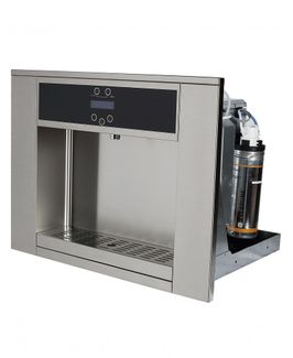 создан в Италии для того, чтобы гармонично сочетать диспенсер для воды с дизайном кухни диспенсер оснащён фильтрами для проточной воды EVERPURE производства американской компании PENTAIR Built-in использует технологию микрофильтрации для устранения хлора и небольших твердых частиц, которые могут присутствовать в водопроводной воде производительность Built-in составляет 16 литров в час фильтрованной холодной газированной или не газированной воды, а также воды комнатной температуры. Получить воду можно слегка касаясь клавиатуры на сенсорном экране Built-in встраиваемый диспенсер для воды обеспечит Вас горячей водой для приготовления чая Built-in имеет систему электронного управления, которая использует чип-карты для контроля всей электрической цепи. Диспенсеры оборудуются гнездом для чип-карты, предназначенной для управления микропроцессором. Основная функция программы, установленной на микропроцессоре - это постоянный контроль фильтров, информирование пользователя о приближении окончания срока службы (за 30 или меньше дней до того, как будет отфильтрован максимальный объем) и блокирование работы диспенсера в том случае, если фильтр не был заменен до требуемого срока, либо после обработки максимального литража. Это предотвращает некорректную эксплуатацию диспенсера и всегда обеспечивает идеальную очистку воды программа постоянно контролирует параметры "оптимального состояния" диспенсера и предупреждает пользователя визуально и акустически о возникновении проблем в диспенсерах данной серии используется технология O3TECH™ - технология очистки сопла озоном. Благодаря этой революционной технологии электромагнитные клапана и трубы, которые соединяют их с баками подготовки воды, полностью опустошаются всякий раз после налива воды из диспенсера. После этой операции последняя секция трубопровода подачи воды проходит санитарную обработку озоном, который производится внутри дисп