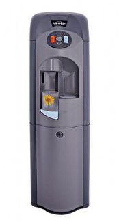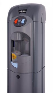Цвет корпуса тёмно-серый, все панели изготовлены из качественного пластика. Управление кнопками. Раздача горячей, холодной воды и газированной воды. Функция "защита от детей". Встроенный подстаканник. Три LED индикатора (индикатор питания, индикатор нагрева, индикатор охлаждения). Самая высокая производительность среди пурифайеров данного класса (температура и производительность нагрева - 90 градусов Цельсия, 8 л/ч; температура и производительность охлаждения - 8 - 10 градусов Цельсия, 22 л/ч, производительность фильтрации - до 120 л/ч). Возможность регулировки максимальной температуры нагрева и минимальной температуры охлаждения, а также степени газирования воды. Использует одноразовые баллоны с газом СО2 (одного баллона достаточно для приготовления до 120 л. газированной воды). Климатический класс SN (температура эксплуатации от 10 до 32 градусов Цельсия).