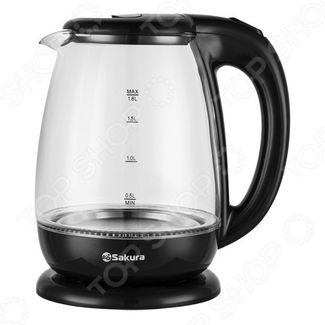 Электрический чайник подходящий вариант для квартир, где не подведен газ. Кипячение воды на электроплите с использованием обычной посуды займет достаточно много времени. Чайник Sakura SA-2723 качественная техника для дома, дачи или небольшого офиса. Эта модель с легкостью решит вопрос быстрого нагревания или кипячения воды для приготовления блюд или напитков. Объем колбы 1,8 литра, этого хватит для удовлетворения нужд 3-4 человек. Высокая мощность 1800 Вт позволяет быстро вскипятить воду. Качественный материал Корпус чайника выполнен из стекла. Материал экологически чистый, не влияет на вкус и запах воды, при нагреве не выделяет вредных примесей. Стекло также дольше остывает, поэтому не всегда будет необходимость повторно включать технику. Такой чайник не вибрирует в процессе кипения воды, поэтому уровень шума минимален. Накипь не въедается в стекло благодаря его структуре, также ее всегда легко увидеть. Через прозрачные стенки удобно наблюдать за кипением воды. Светодиоды по периметру дна превращают процесс в красивое световое шоу. Особенности дизайна База с центральным контактом дает возможность располагать на ней чайник в любом положении, обеспечивая вращение на 360 . Эргономичная пластиковая ручка позволяет удобно удерживать чайник. Она не нагревается. Шкала литража позволяет контролировать уровень жидкости. Кнопка включения выключения находится на рукоятке. Модель оснащена индикатором работы. Удобство и практичность Нагревательный элемент дискового типа спираль закрыта пластиной из нержавеющей стали. Благодаря этому исключается ее прямой контакт с водой. Такая конструкция препятствует образованию накипи, облегчает уход и значительно снижает шум при нагревании воды. Чайник автоматически отключается при закипании, имеет защиту от включения без воды. None Возможен самовывоз. Есть доставка.
