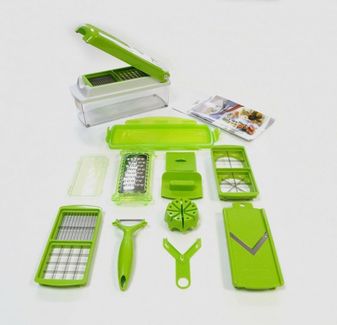 Описание Крошит, шинкует и нарезает за считанные секунды Кухонный помощник - Nicer Dicer Plus С этого момента измельчать овощи стало еще проще. Кубики, ломтики, соломка - со всем этим легко справится овощерезка Nicer Dicer Plus, которая отлично соединила в себе функции терки, ломтерезки и ножа. Овощерезка Найсер Дайсер Плюс может нарезать овощи соломкой, ломтиками, большими и маленькими кубиками, разрезать их на 4 или на 8 кусочков, и, даже, натирать их! Все это теперь возможно с помощью только одного приспособления, которое облегчит вашу повседневную жизнь и сэкономит массу времени и свободного места на кухне! Конструкция лезвий Nicer Dicer Plus такова, что при нарезании овощей и фруктов с тонкой кожурой ломтики выходят ровными и не сминаются. Теперь не важно, что вы будете резать: помидор или ананас – все кусочки получаться одинаково красивыми. Контейнер, идущий в к