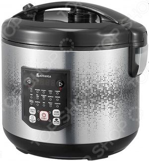 Кухня это место, где всегда приятно провести время, насладившись едой, приготовленной собственными руками. Для того, чтобы сделать пребывание на ней максимально комфортным, нужно предусмотреть каждую деталь. Мультиварка Василиса ВА-6002 это современный прибор, который станет вашим верным помощником и займет видное место на кухне. Модель имеет прочный и надежный корпус, простое и удобное сенсорное управление, а стильный современный дизайн способен дополнить интерьер любой кухни. Мультиварка оснащена богатым функционалом и всеми необходимыми настройками. Кулинарный шедевр легко Принцип работы устройства прост: нужно поместить продукты в мультиварку, выбрать необходимый режим и запустить ее. Устройство имеет 15 автоматических программ приготовления, среди которых суп, макароны, на пару, варка, тушение, плов, рис каша, молочная каша, экспресс, томление, жарка фритюр, выпечка, хлеб, йогурт тесто, разогрев, которые помогут воплотить все кулинарные фантазии. Прибор обладает мощностью 860 Вт. Модель оснащена LED-дисплеем, который проинформирует о выбранных параметрах. Наличие 24-часового таймера позволит настроить нужное время приготовления. Преимущество модели функция поддержания температуры до 12 часов. Программа Мой рецепт даст возможность регулировать время и температуру приготовления. Предусмотрены съемные контейнер для сбора конденсата, сетевой шнур и паровой клапан. Система защиты от перегрева обеспечит безопасное использование прибора. В случае сбоя в электропитании прибор сохраняет выбранные параметры сроком до 120 минут. Вкусно и полезно Универсальная мультиварка обладает чашей объемом 5 литров с антипригарным покрытием. Благодаря антипригарному покрытию температура распределяется равномерно. Готовить пищу можно с минимальным использованием жира и масла. Продукты не прилипают и не пригорают в процессе приготовления. Она легко чистится и моется. Приготовленные блюда не будут содержать посторонних запахов или привкусов. Мультиварка станет полезным при