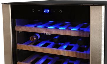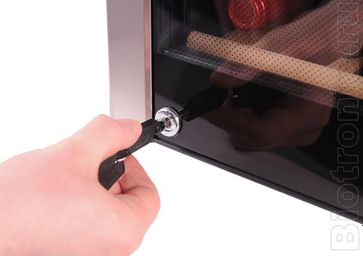 одна зона охлаждения; дверца винного шкафчика выполнена из нержавеющей стали и стеклопакета с покрытием блокирующим ультрафиолетовые лучи; шкафчик имеет голубую LED-подсветку; полки из дерева (бук); встроенный замок закрывающий дверцу (защита от детей); с помощью панели управления можно задать температуру хранения вина.