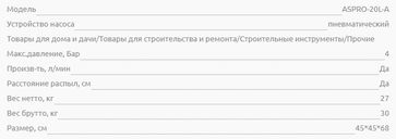 Красконагнетатели ASpro-20L-Aпредставляют собой литой цельнометаллический бак объёмом в 20 литров, изготовленный из прочного металла. Функционирует устройство от энергии сжатого воздуха, поэтому необходимо использование компрессора.