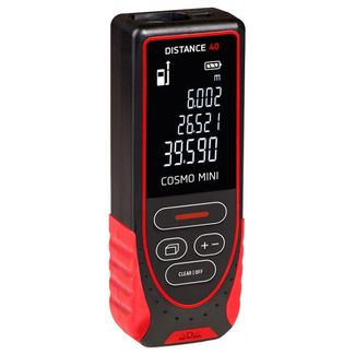 Лазерная рулетка ADA COSMO Mini 40 новая компактная модель лазерного дальномера для измерений до 40 метров. Оптимальный дальномер специальной серии COSMO с минимальным набором функций для измерений и расчетов. Точность и дальность. Лазерная рулетка ADA COSMO Mini 40 предназначена для измерений дистанций до 40 метров внутри помещений и на улице. Погрешность измерения ±2,0 мм. Простое управление. Все измерения производятся при помощи всего 4 кнопок. Первая - измерение, она же включение и переход в непрерывный режим, вторая кнопка для выбора функций: измерение площади, объема, измерения «по Пифагору». Третья - функция сложения и вычитания. Четвертая - отмена и выключение. Оптимальный набор функций. ADA COSMO Mini 40 выполняет самые необходимые функции: измерения расстояний, непрерывные измерения, расчет площади, объема, сложение и вычитание измерений. Недоступные величины (измерение высоких объектов или через препятствие) можно измерить «по Пифагору». Яркий дисплей. 3-строчный черный дисплей с постоянной подсветкой удобен при работе в любое время суток. Белые цифры очень хорошо видно при любом освещении. В нижней строке крупными цифрами отображается полученный результат. В двух верхних строчках цифрами меньшего размера выводится предыдущие значения. Выбор единиц измерения (ft/m) и точки отсчета. На выключенном приборе нажмите и удерживайте более 7 секунд клавишу включения. Выбранные единицы измерения (ft/m) отобразятся на дисплее. При необходимости можно изменить точку отсчета: передняя или задняя плоскость дальномера. Автоматическое выключение. Для экономии заряда батарей через 60 сек автоматически выключается подсветка Безналичный расчет. Необходима предоплата Возможен самовывоз. Есть доставка.