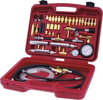 KA-7042 Комплект для проверки давления топлива. Профессиональный набор для измерения давления в топливных магистралях. Известно, что бензонасос должен поддерживать определённое давление топлива. Пониженное давление в рампе при включенном бензонасосе свидетельствует о скором выходе его из строя. Пониженное давление в рампе при простое системы после выключения бензонасоса свидетельствует о неисправности обратного клапана. У разных марок и моделей автомобилей штуцеры топливной рампы отличаются. Для удобства использования набор комплектуется двумя манометрами (1. 0-7 бар; 2. 0-3,5 бар). Набор включает в себя множество адаптеров и переходников для подключения к топливной системе автомобиля: Honda, Acura, Hyundai, Mazda, Suzuki, Toyota, Audi, BMW, Mercedes, Peugeot, Porsche, Saab, VW, Volvo, Ford, GM и другие. В набор входит: 12мм-1,25 адаптер манометр (0-7 бар) 12мм-1,5 адаптер манометр (0-3,5 бар) адаптер 12мм-1,5 * 10мм-1,0 * 1-9/16” 1/4” NPT адаптер с клапаном адаптер 12мм-1,5 * 10мм-1,0 * 1-1/4” быстрый соединитель для GM адаптер 12мм-1,5 * 8мм-1,0 * 5/16” 2.2К адаптер для GM хомуты T.B.I. адаптер для GM 13” адаптер для шланга Ford пружинный адаптер для Ford шланг с регулятором адаптер для Ford шланг C.I.S. Bosch адаптер 12мм-1,5 штекер * 8мм-1.00 базовый шланг 24” 1/41/4” заглушка адаптер под шланг 12мм-1,55/8-18мм1-9/16” 5/16” шланг соединитель 1/4РТ-19 1/4” шланг соединитель 14мм-1,5 адаптер 12мм-1,5 штекер * 8мм-1.00 * 3” соединитель 5/8-18 5/161/4” NPT адаптер под шланг 16мм-1,5 1/41/4” NPT адаптер под шланг адаптер 12мм-1,55/8-18мм-1,51-9/16” адаптер для HONDA адаптер 12мм-1,516мм -1,51-9/16” 8мм1,0 адаптер адаптер 12мм-1,514мм -1,51-9/16” 10мм-1,0 адаптер адаптер 12мм-1,51/4РТ -191-9/16”