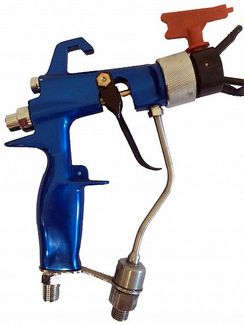 Окрасочный пистолет (краскопульт) для безвоздушного распыления с реверсивным соплом используется для профессиональной покраски под высоким давлением, как и пистолеты для безвоздушного распыления, но отличается подачей сжатого воздуха в воздушную головку, тем самым объединяя методы безвоздушного и воздушного распыления.