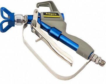 Шпатлевочные распылители (окрасочные пистолеты) ASpro используются для нанесения на поверхность преимущественно шпатлевок, но также пригоден для распыления красок различной степени вязкости, в том числе и огнезащитных паст. Для работы с краской, в рукоятке пистолета предусмотрена установка фильтра тонкой очистки, что снижает вероятность засора сопла. Таким образом, пистолет является универсальным инструментом. Краскопульты этой серии предназначены для работы с окрасочным оборудованием безвоздушного распыления. Стандарт резьбы позволяет соединять пистолет со шлангами большинства известных производителей окрасочных аппаратов (Graco, Wagner, Titan) Конструктивные особенности Краскораспылители серии ASpro имеют вход диаметром в 3/8 дюйма (около 10.0 мм). Краскопульты рассчитаны на работу под давлением, не превышающим значения в 248 бар. Т.е. устройства подходят для большинства современных окрасочных станций с электроприводом.