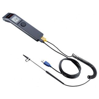 Компактные лазерные ручные термометры optris MS LT, MSplus LT и MSpro LT обладают широким диапазоном температуры от –32 °C до 420 °C, 530 °C или 760 °C. Они позволяют быстро обнаруживать даже самые крошечные объекты, при этом одноточечный лазерный прицел дополнительно облегчает нацеливание на объект измерения. Инфракрасный термометр optris MSplus LT к тому же оснащается функцией акустического и визуального высокого или низкого сигнала тревоги с меняющейся подсветкой дисплея. Инфракрасный термометр IR-Thermometer optris MSpro LT помимо встроенной функции тревоги имеет внутреннюю память для сохранения до 20 значений измеряемых величин и отдельный вход для термопары, включая прокалывающий щуп (тип K) с индикатором измеряемой величины в дисплее MSPro. Важные параметры Диапазон температур: от –32 °C до 760 °C (диапазоны температуры различаются в зависимости от модели). Спектральный диапазон: от 8 до 14 мкм. Оптическое разрешение: 20:1 (MS и MSplus); 40:1 (MSpro). Коэффициент излучения: 0,95 (MS); от 0,100 до 1,100 (регулируемый для MSplus и MSpro). Безналичный расчет. Необходима предоплата Возможен самовывоз. Есть доставка.