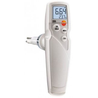 Особенностью Testo 205 является то, что данный прибор объединяет в себе pH метр (измеритель заключен в корпус из прочного пищевого пластика) и контактный термометр погружного типа.