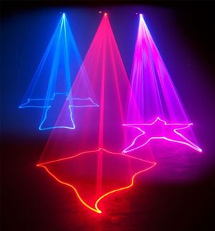 - Уникальный лазер DMX проецирует лазерные паутины красного, синего и маджентового цветов