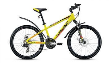 - 24" FORWARD Twister 2.0 Disc 2018 (21ск, алюм, аморт.вилка, диск.мех, EF510 TY300 TY300 TZ500)(рама 14", желтый матовый) по выгодной цене 16 380 р. руб.;