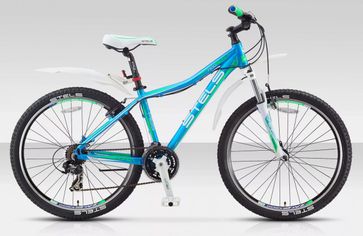 STELS Miss-7100V.16 26" (21ск, алюм, амор.вилка, Vbr, Shimano EF51 TX50 TX51 TZ21)(рама 15,5", голубой салатовый белый)