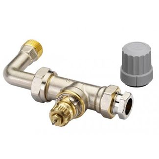 Клапан регулирующий Danfoss RA-KE 1/2" с уплотнительной втулкой, отводом и соединительной гайкой для однотрубных систем отопления с подпольной прокладкой трубопроводов. Присоединение - наружная резьба. Материал корпуса - коррозионно стойкая латунь, уплотнения - каучук, шток и пружина - хромированная сталь. Рабочее давление - 10 бар, макс. температура +120 С. None Страна производства: Дания