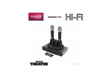 Радиомикрофон. Двухканальная беспроводная микрофонная система с двумя кардиоидными динамическими ручными передатчиками и одним двухканальным приёмником. Диапазон 900 МГц. 42 канала. Радиус действия до 50 м. Частотный диапазон: 50 - 15000 Гц. 2 динамических микрофона с независимыми выходами. Прочный корпус усиленной конструкции. Шестигранный ограничитель, препятствующий скатыванию с наклонных поверхностей. Встроенный аккумулятор. Время непрерывной работы при полной зарядке аккумуляторов до 10 часов. Док-станция с возможностью настенного крепления. Беспроводной пульт управления в комплекте. Разработан для использования в караоке-заведениях. Производитель: Корея. None