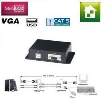 Удлинитель линии. Комплект VGA, мыши и клавиатуры (PS/2) приемник-передатчик для передачи сигналов по витой паре CAT5. Удлинитель предназначен для подключения VGA-монитора, клавиатуры и мыши к компьютеру на расстоянии до 100 метров по 2-х парному кабелю STP (экранированной витой паре) или UTP (неэкранированной витой паре) категории 5 (CAT5). Данный комплект, включающий приемник и передатчик, применяется как эффективное, экономичное и быстрое решение в домашних или коммерческих целях, позволяющее избежать использования дорогостоящего и неудобного VGA кабеля, кабеля клавиатуры и мыши. Используется для подключения демонстрационных проекторов в аудиториях, залах заседаний, сложных компьютерных системах, системах тренажеров, демонстрационных системах на промышленных выставках, а также в медицинских справочных системах. Аналогичен удлинителю 3KM9TP-30RT, но клавиатура и мышь соединяются с локальным устройством через USB-порт. None