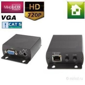 Удлинитель линии. Комплект VGA приемник-передатчик для передачи сигналов по витой паре CAT5. Данный комплект активных приемника и передатчика VGA сигнала на дальние расстояния обеспечивает передачу видеосигналов VGA на расстояние до 300 метров по 4-парной неэкранированной витой паре категории 5 (UTP CAT5). При использовании в паре "приемник + передатчик" данный VGA удлинитель применяется как эффективное, экономичное и быстрое решение в домашних или коммерческих целях, позволяющее избежать использования дорогостоящего и неудобного кабеля VGA путем подключения удаленных VGA мониторов к компьютеру через стандартный кабель типа "витая пара". Идеально подходит для распределения видеосигналов в аудиториях, лекционных залах, в системах интерактивных терминалов самообслуживания, видеоинформационных системах, системах проекторов верхнего расположения, системах компьютерных тренажеров и компьютерных демонстрационных системах на промышленных выставках. Комплект включает передатчик и приемник активного типа. Регулировка контрастности и яркости производится на приёмнике. Поддерживает разрешение до 1600 x 1200 пикс. при частоте 85 Гц. Позволяет использовать 4-парный кабель UTP CAT5 вместо VGA кабеля для передачи сигнала на дальние расстояния. Поддерживает передачу сигнала на расстояние до 300 метров (макс.). None