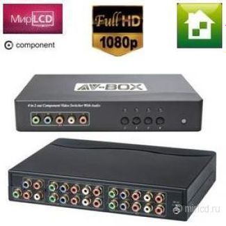 Коммутатор компонентного видеосигнала 4 х 2. Коммутатор компонентного Y-Pb-Pr видеосигнала с аналоговым звуковым трактом. Коммутатор компонентного видео сигнала позволяет четырем различным источникам компонентного видео и стерео или цифрового аудио сигналов совместно использовать два монитора. Данное удобное устройство позволяет осуществлять ручное или дистанционное управление несколькими источниками видео сигнала. Модель AV-BOX SW8-41AA – Коммутатор компонентного видео сигнала и стерео аудио сигнала с 4 входами и 2 выходами. Поддерживают HDTV с разрешением 480i/480p/720p/1080i/1080p. Позволяет подключить до 4 источников видео/аудио сигнала к двум мониторам. Поддерживает коммутацию входящего стерео аудио и видео сигнала. Коммутатор идеально подходит для любых устройств, поддерживая коммутацию аудио и видео сигнала высокой четкости. Включает устройство инфракрасного дистанционного управления. None