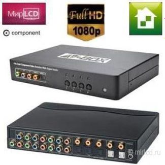 Коммутатор компонентного видеосигнала 4 х 2. Коммутатор компонентного Y-Pb-Pr видеосигнала с цифровым звуковым трактом. Коммутатор компонентного видео сигнала позволяет четырем различным источникам компонентного видео и стерео или цифрового аудио сигналов совместно использовать два монитора. Данное удобное устройство позволяет осуществлять ручное или дистанционное управление несколькими источниками видео сигнала. Модель AV-BOX SW8-41AD – Коммутатор компонентного видео и цифрового аудио сигнала с 4 входами и 2 выходами. Аналогичен коммутатору SW8-41AA, но поддерживает коммутацию цифрового аудио вместо стерео аудио сигнала. Цифровой аудио сигнал: коаксиальный или оптический кабель. None