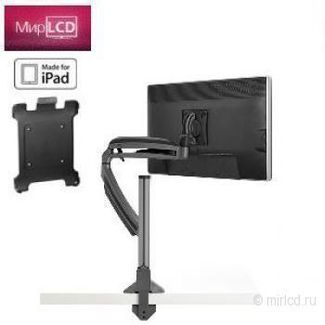 Настольный кронштейн для монитора. Серия Kontour. Динамический, настольный кронштейн-зажим для одного монитора размером 10 - 30". Возможность размещения Apple iPad 2, 3 и 4 поколения или лаптопа. Комплект K1C120BXI2B включает в себя крепление для монитора и крепление FSBI2B для iPad, а также адаптер KRA400B для использования с FSBI2B. Количество мониторов 1 включая крепление для iPad. Ориентация - Пейзаж, Портрет. Максимальный вес монитора, кг 2.3 - 11.3. Угол наклона + 75 °, -10 °. Крепление к столешнице струбцина. Толщина столешницы, мм 12.7 - 63.5. Динамическая регулировка по высоте, мм 330.2. Ручная регулировка высоты, мм 177.8. Максимальное расширение, мм 571. Минимальная глубина, мм 62. Монтажный шаблон совместимости VESA (универсальная версия), мм 75 х 75, 100 х 100. Соответствует ТАА. Динамические, регулируемые по высоте крепления являются прекрасным решением для офиса, медицинских учреждений или дома. Обеспечивают максимальное количество как динамической, так и ручной регулировки высоты для окончательного, эргономичного решения. Технология Centris для легкого позиционирования, наклона монитора кончиком пальца. Цвет: Черный. Производитель: США. None
