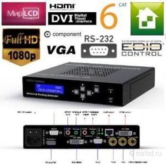 Удлинитель линии. Универсальный, HDBase-T мультиформатный коммутатор-масштабатор видеосигналов для передачи сигналов по витой паре CAT 5e/6/6e с управлением RS-232. Поддержка практически всех использующихся на данный момент сигналов: композитный видео, S-Video, компонентный видео (YPbPr), аналоговый RGB (VGA), цифровой DVI, цифровой HDMI с поддержкой HDCP. Профессиональная обработка входного сигнала адаптивный де-интерлейсинг и масштабирование обеспечивают самое высокое качество и кристально чистое видео изображение на выходе без потери кадров, повышение качества, 3D адаптивная гребенчатая фильтрация и адаптивное уменьшение 3D шума. Высокое качество масштабирование входных сигналов вверх или вниз. Коммутация и передача входных сигналов HDMI на локальный HDMI выход. Коммутация и передача входных сигналов через Cat6 кабель на приемник DCATR-100 с выходом HDMI. Полная поддержка HDCP через один кабель Cat6. EDID Expert предлагает различные методы для обработки EDID потока для входов и выходов. Выделение аудио сигнала (de-embedding) из различных входных сигналов. Вложение аудио сигнала (embedding) для выхода сигналов HDMI. Конфигурирование и настройка с помощью кнопок и ЖК-дисплея. Простой в использовании графический пользовательский интерфейс для конфигурирования через USB подключение к ноутбуку. RS-232 для дистанционного управления и коммутации входных сигналов. Производитель: Венгрия. None