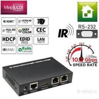 Удлинитель линии. Серия Exzellenz. Передатчик HDMI-HDBaseT для передачи сигналов по одному кабелю витой пары CAT5e/6 с дополнительным портом Ethernet и IR/RS-232 (двунаправленный) управлением. Скорость передачи данных: 10.2 Гбит / с. Поддержка до 100Base-T. Обеспечивает передачу без потери качества видео сигналов 4К и UltraHD на расстоянии до 35 м через HDBaseT. Расширение сигнала: (До 100 метров @ 1080/60, 1920 x 1200 помощью CAT6 / STP кабеля, до 75 метров @ 1080/60, 1920 x 1200 помощью CAT5e / UTP кабеля, до 35 метров @ Ultra HD / 4K (2160P / 24) через CAT6 / STP кабель). 3D Ready - Поддержка прохождения сигналов и форматов 3D. Поддержка Deep Color до 8-бит на 2160p / 24, до 12-бит на 480p / 720p / 1080i / 1080p. CEC поддержка на входных и выходных HDMI каналах. I2C связи - EDID и HDCP пропуск от дисплея до источника. ИК-канал. Управление RS-232. Контроль расширения сигнала однонаправленный ИК или двунаправленный RS-232 управления. Cертифицирован; CE, RoHS. Совместимый приемник: Inakustik 009120302 HD-BASE-T Receiver 120 м. Производитель: Германия. None