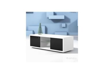 Тумба ТВ. Серия JRA. Подставка для установки телевизора с диагональю экрана 46"- 65", размещения 2-6 аудио-видео компонентов или хранения мультимедиа. Каркас дерево, глянец. Декоративная накладка (опорная пластина), закаленное стекло. Три регулируемые полки (шаг 32 мм) из закаленного, прозрачного стекла. Две дверцы из закаленного, матового стекла для хранения без пыли. Стекло чрезвычайно устойчиво к царапинам и легко очищается. Эстетический и исключительно легкий дизайн. Максимальная нагрузка на тумбу 100 кг. Максимальная нагрузка на стекло 25 кг. Габариты (ШхВхГ), мм: 1500х450х500. Цвет каркаса: Белый. Цвет опорной пластины: Прозрачный. Цвет дверцы: Черный. Цвет полок: Прозрачный. Производитель: Германия. None