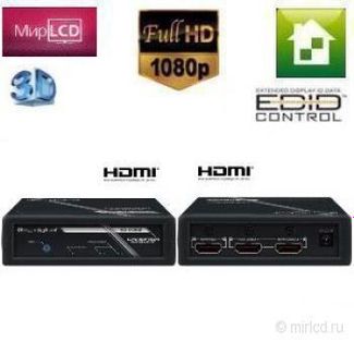Усилитель-распределитель HDMI. Серия: Champion. Усилитель-распределитель HDMI 1 х 2. KD-1X2CS обеспечивает совместимость с дисплеями и управляет EDID между источниками и дисплеями. 1 источник HDMI на 2 HDMI дисплея. Поддержка разрешения: SD, HD и VESA с разрешением до 1080p (60 Гц и 50 Гц). 3D Ready - Возможность прохождения и форматов 3D. EDID - Внутренняя библиотека с 12 конфигурациями по умолчанию для каждого входа в дополнение к родным данным EDID для любого выхода / дисплея. EDID управление по умолчанию EDID для 1080i или 1080p систем. Технология Full Buffer - Полная буферизация HDCP и EDID для максимально быстрого переключения и просмотра любого источника / ввода для любого отображения / вывода, независимо от многократного просмотра по отношению к выходу. Сжатое цифровое аудио без потерь (Dolby TrueHD, Dolby Digital Plus и DTS-HD Master Audio). Поддержка Deep Color до 12 бит / цвет. I2C связи - EDID и HDCP прозрачность от дисплея до источника. Полностью лицензированный и совместим со всеми технологиями HDMI и HDCP. Производитель: США. None