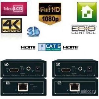 Удлинитель линии. Серия FatCat. Комплект HDBaseT HDMI приемник-передатчик для передачи сигналов по одному кабелю витой пары CAT5e/6 с IR/RS-232 управлением. Удлиняет HDBaseT / HDMI с помощью одного кабеля CAT5e / 6. Контроль расширения сигнала однонаправленный ИК (Tx на Rx) или двунаправленный RS-232 управления с помощью 3.5 мм стерео подключения на Tx и Rx (включает один КД-IRE3501F ИК излучатель для управления ИК управляемых устройств). HDBaseT используемые на выходе CAT5e / 6 RJ45. Расширение сигнала: (До 76 метров @ 1080/60, 1920 x 1200 помощью CAT6 / STP кабеля, до 64 метров @ 1080/60, 1920 x 1200 помощью CAT5e / UTP кабеля, до 36 метров @ Ultra HD / 4K (2160P / 24) через CAT6 / STP кабель). 3D Ready - Возможность прохождения и форматов 3D. Ultra HD / 4K: 2160p / 24 видео разрешение с поддержкой 4K-совместимых телевизоров и коммерческих приложений, таких как театры Digital Movie Theaters, CAD, Post Production. Автоматическая настройка - Выравнивание в зависимости от длины используемого кабеля. Сжатое цифровое аудио без потерь (Dolby TrueHD, Dolby Digital Plus и DTS-HD Master Audio). Поддержка Deep Color до 8-бит на 2160p / 24, до 12-бит на 480p / 720p / 1080i / 1080p. CEC поддержка на входных и выходных HDMI каналах. I2C связи - EDID и HDCP прозрачность от дисплея до источника. Полностью лицензированный и совместим со всеми технологиями HDMI и HDCP. Требования к кабелю - Стандартный UTP CAT5, 5e или CAT6 кабель. Производитель: США. None