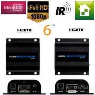 Удлинитель линии. Комплект HDMI приемник-передатчик для передачи сигналов по одному кабелю витой пары CAT6/6A/7 с IR управлением. Удлиняет HDMI с помощью одного кабеля CAT6/6A/7 на расстояние до 65 метров. Поддержка HDMI 1080P. Поддержка IR - Включает в себя IR-передатчик и IR-приемник. Производитель: США. None