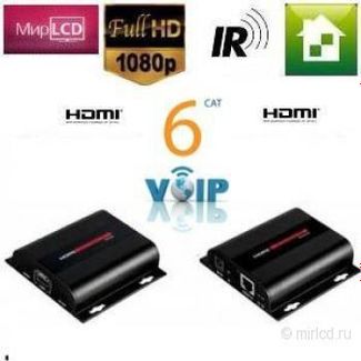 Удлинитель линии. Комплект HDMI приемник-передатчик для передачи сигналов по одному кабелю витой пары CAT6/6A/7 с IR управлением и IP протоколом. Удлиняет HDMI с помощью одного кабеля CAT6/6A/7 на расстояние до 120 метров. Поддержка HDMI 1080P. Поддержка IR - Включает в себя IR-передатчик и IR-приемник. Точка-точка и точка для многих операций (Video over IP и Voice over IP) через сетевой коммутатор. Производитель: США. None