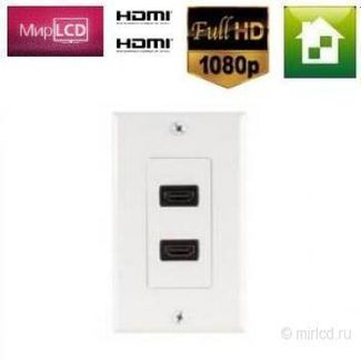 Настенная панель. Настенная панель - розеточный модуль HDMI х 2. Разъем - позолоченный HDMI (мама). Совместимость с HDMI. Поддерживает разрешения высокой четкости 1080p - 1080i - 720p - 480p. Быстрая и простая установка настенной панели HDMI. Стиль Decora (отсутствие внешних винтов). Установочная коробка стандарта Single gang для 1 панели. Цвет: Белый. Производитель: США. None