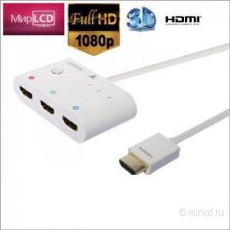 Коммутатор HDMI 3 х 1. Пассивный, автоматический коммутатор HDMI 3 х 1. 3 входа HDMI и 1 выход. Возможность подключения 3-х устройств с разьемами HDMI и вывод данных на телевизор. Поддерживает разрешение до Full HD1080p. Поддержка Deep color до 36-битного цвета. Поддержка формата 3D видео. Автоматический и ручной выбор входа. Длина кабеля 1.5 метра. ProLink MP201 позволяет подключить сразу три источника сигнала HDMI. Переключение между источниками видеосигнала происходит автоматически, либо есть возможность сделать это вручную простым нажатием на кнопку. В числе преимуществ коммутатора MP201 стоит отметить отсутствие необходимости подключения дополнительного питания, высокое качество материалов, HDMI-переключател-коммутатор на 3 входа и 1 выход, надёжность и удобную конструкцию с кабелем длиной 1.5 метра. None
