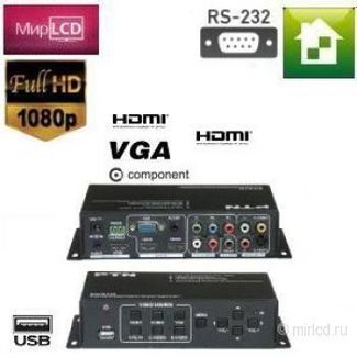 Мультиформатный коммутатор HDMI х 2/ VGA х 1/YPbPr х 1/C-Video х 1/S-Video х 1 - HDMI х 1. Презентационный, коммутатор HDMI/ VGA/YPbPr/C-Video/S-Video х 1 (5 видео + 4 аудио х 1 видео + 3 аудио) с мультимедийный входом USB, функцией масштабирования изображения и RS232 управлением. Масштабируемые одновременно входы HDMI/ VGA/YPbPr/C-Video/S-Video до 1080P и 1920 х 1200 на выходе HDMI. Аудио выбирается из встроенного в HDMI или внешнего источника. Аудио выбирается из встроенного в HDMI или внешнего источника. 3 аудио выхода: HDMI встроенный звук, 3.5 мм стерео аудио и коаксиальный (SPDIF). Изображения и MP3 могут быть загружены непосредственно с USB. Настройки параметров видео с предустановками. Настройка громкости (бас, высокие частоты, режим звука) при фиксированных настройках. Видео входы совместимы с NTSC 3.58, NTSC 4.42 PAL и SECAM. Меню OnScreenDisplay (OSD). HDMI 1.3 и HDCP совместимый. Обновление прошивки через USB. Управляемый с помощью кнопок на передней панели, ИК и RS232. Блок питания с широким диапазоном напряжения для использования. Индикаторы LED на передней панели. Инфракрасный пульт дистанционного управления для легкого управления с расстояния. PTN SC61D коммутатор-преобразователь видео формата до Full HD 1080P с 5 видео + 4 аудио входами и 1 видео + 3 аудио выходами. Он преобразует и переключает любой видеосигнал на выходе HDMI до 1080P, управляемый с помощью кнопки, пульта ДУ, IR и RS232. PTN SC61D идеально подходит для использования в учебных помещениях, переговорных, конференц-залах, демонстрационных-залах и т. д. Производитель: Индонезия. None