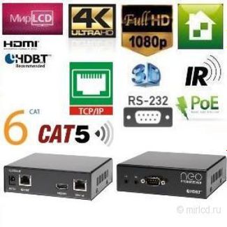 Удлинитель линии. HDMI-HDBaseT передатчик для передачи сигналов по одному кабелю витой пары CAT5e/6/7 с IR/RS232 управлением. Расширение сигнала: (До 100 метров @ 1080/60, 1920 x 1200 помощью CAT6 / STP кабеля, до 70 метров @ 1080/60, 1920 x 1200 помощью CAT5e / UTP кабеля, до 70 метров @ Ultra HD / 4K (2160P / 24) через CAT6 / STP кабель). Изображение (обработка) максимальная частота пикселизации 340 Мпикс/с регулируемые. Вход передатчик 1 х HDMI 2.0a. Выход передатчик 1 х HDBaseT-Pro (класс A). HDCP 1.x - 2.2. Вход приемника IR 1 х 3.5 мм. Выход передатчика IR 1 х 3.5 мм. Выход RS232 1 х RS232. Вход передатчика LAN 1 х RJ45. ИК-контроль двунаправленный CAT5e/6. Последовательный контроль двунаправленный CAT5e/6. Контроль IP передатчик - 1 x 10/100 LAN. Благодаря технологии HDBaseT класса B для проектов, требующих всех преимуществ передачи HDBaseT, передатчик neo: Pro Transmitter поддерживает передачу сигнала 1080p при 60 Гц до 100 метров, Ultra HD 4K более 70 м, HD-аудио, питание от HDBaseT (PoH) дистанционное питание от передатчика до приемника и двунаправленное управление через ИК и RS232 по одному кабелю Cat5e / 6. Сертификация CE, FCC, RoHS. Примечание: требуется совместимый приемник HDBaseT. Производитель: Великобритания. None